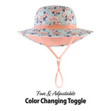 Adjustable toggle changes color when exposed to UV light, showing when sun rays are most intense.2-Inch Brim