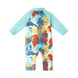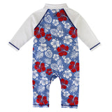 Full front zipper closure makes suit a breeze to throw on and take off, even when wet. Diaper changes have never been easier.Ruffled Hem