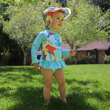 Front brim protects face from harsh sun rays. Adorable, ruffled detail on brim of hat adds extra cuteness.Made abroad. Designed in California.