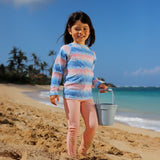 Zippered pocket hidden in waistband is perfect for holding shells and small treasures.Flatlock Seams