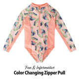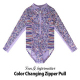 Pull Zipper pull changes color when exposed to UV light, showing when sun rays are most intense.20¾" Body Length