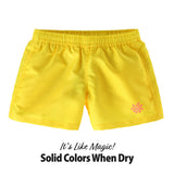 Like magic, a hidden print becomes visible when the shorts are wet and disappears when they dry, creating a fun surprise every time she jumps into the water.Adjustable Internal Elastic Band