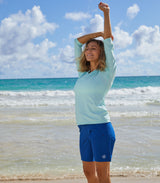 Makes for a smooth transition from water to land. No more sitting around in wet clothes.Lightweight & Breathable