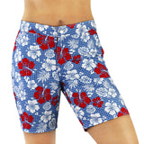 Waistband of shorts sits just above the hips, adding comfort, coverage, and style.Credit Card Pocket