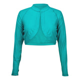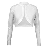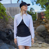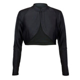 Clasp at the top of the shrug makes it easy to wear it open or closed.Cropped Length