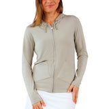 Color-changing zipper pull indicates UV intensity, helping you stay sun-smart.Full-Length Zipper