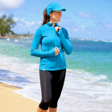 Full length front zipper closure makes rash guard a breeze to pull on and take off, even when wet.Thumb Holes at End of Sleeves