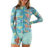Full length front zipper closure makes rashguard a breeze to pull on and take off, even when wet.UV Detecting Zipper Pull