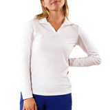 Quarter length front zipper closure makes shirt a breeze to pull on and take off.25¾" Body Length