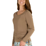 Ultra-soft viscose made from bamboo fabric makes this shirt ideal for cool and comfortable coverage.Scoop Neck