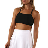 Straps cross at back and are secured together for additional support and a modern look.Double Needle Stitching