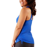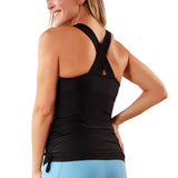 Adjustable ruched side details add style and increase function, allowing for shorter or longer looks.Crisscross Straps